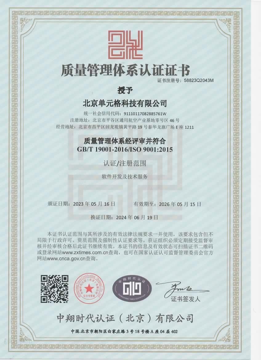 - 公司通过ISO9001质量管理体系认证并具备多项软件著作权登记证书。